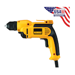 DeWALT® Electric Drill, Corded Heavy Duty, 3/8 in Chuck, Keyless Chuck, 0 to 2500 rpm, 120 V AC, 7 A, Metal Housing, Soft/Piston Grip, Yellow, Variable Speed Reverse Trigger Switch Control, 9-1/2 in Overall Length