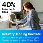The 3M™ Aqua-Pure™ Under Sink Full Flow Water Filter System 3MFF100 is a drinking water filtration system that can be installed on your existing primary faucet to provide filtered water at a high flow rate. It reduces particulates, chlorine taste and odor, parasitic protozoan cysts, lead and select volatile organic compounds (VOCs) such as benzene and p-Dichlorobenzene.