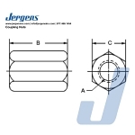 Jergens Coupling Nuts have internal threads on both ends that connect two male fasteners. They are commonly used to join threaded rods to create longer rod lengths. Features, Benefits, & Product Specifications:Material: Low Carbon SteelFinish: Black OxideHeat Treat: Case HardenedThread: 2B-UNC