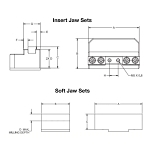 Insert Jaw Sets for 75mm Self-Centering Vise:-INSJ Material: Through Hardened Alloy SteelIncludes serrated insertsAlternate insert styles available (see Related Products)Set includes (2) jawsSoft Jaw Sets 75mm Self-Centering Vise:-ASJ Material & Finish: High Strength Alminum, Blue Anodized-SSJ Material & Finish: Low Carbon Steel, Black OxideSet includes (2) jawsStep Jaw Sets 75mm Self-Centering Vise:-HSJ Material & Finish: Through Hardened Alloy Steel, Black OxideSet includes (2) jawsNote:Moveable jaw sets available wth gibs for tighter tolerances within rails. Add "SC" to base part number. Example: "49421SC"