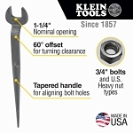 Klein® Open End Wrench, Erection, Measurement System: Imperial, 1-1/4 in Wrench Opening, 16-5/8 in Overall Length, 60 deg Offset, 2-1/2 in Open End Width, Tapered, 1 to 1/4 in Dia Handle, Forged Alloy Steel, Industrial Black