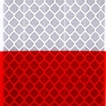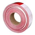 Roll of alternating 11 inch red and 7 inch white, highly reflective, microprismatic sheeting with pressure sensitive adhesive for easy application to trucks, trailers and large vehicles to enhance visibility and detection distance.