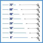 The perfect tool for cleaning inaccessible and hard to reach areas, Long John® safety air guns are used for blowing floor debris, cleaning masonry forms, tanks, ovens, molds, and rafters, as well as machinery and storage areas. Efficient venturi nozzle boosts thrust up to 200% over conventional air guns, yet limits static pressure to less than 30 psi should the tip become blocked. Ergonomic, Classic+® pistol grip style handle provides maximum user comfort.