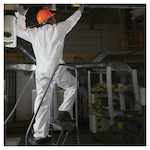KleenGuard* chemical A10 light duty coveralls are a terrific choice when you need to provide economical, disposable protection for workers who are exposed to dirt and grime in the workplace they are protective wear designed for entry level protection from hazardous dust and feature a zipper front, serged seams and elastic wrists. The fabric is made of five-layers of stacked barrier protection, for a lightweight breathable protective coverall. These white, disposable coveralls are a popular choice for food processing, general maintenance and manufacturing.