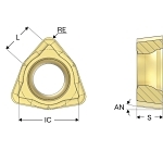 Seco Indexable Drill Insert, Center, Series: Perfomax™, WCMX Insert, 050308 Insert, Trigon, 7.9 mm Inscribed Circle, 3.2 mm Thickness, 86 Chipbreaker, 0.8 mm Corner Radius, Manufacturer's Grade: S60M, 80 deg Included Angle, ANSI Code: WCMX050308-86, Carbide, Uncoated