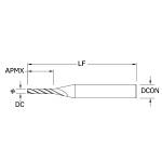 SGS® Square End Mill, Fractional Long Length, Series: M4SE, 0.047 in Diameter Cutter, 2-1/2 in Overall Length, 0.376 in Length of Cut, 4 Flutes, Spiral Flute, 1/8 in Shank Diameter, Right Hand Cutting Direction, 30 deg Helix Angle, Common Shank, 2.124 in Shank Length, Solid Carbide, Uncoated