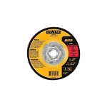 DeWALT® High Performance™ Guaranteed Tough® Depressed Center Cutting Wheel, Flat, 4 in Wheel Diameter, 0.045 in Wheel, Threaded Arbor Connector, 60 Grit, Medium Grade, Aluminum Oxide Abrasive, Wheel Type Number: Type 27, 13300 rpm Maximum, Resin Bond, Applicable Materials: Ferrous Metal and Stainless Steel, 5/8-11 Center Hole Thread, Wheel Hardness: T, Black/Yellow Wheel, Reinforced: Yes