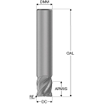 Seco JABRO® Solid2 End Mill, High Performance Single End Universal, Series: Solid2 JS554, 1/2 in Cutter Dia, 0.03 in Corner Radius, 3-1/2 in Overall Length, 1 in Length of Cut, 4 Flutes, Right Spiral Flute, 1/2 in Shank Dia, Right Hand Cutting, 48 deg Helix Angle, Cylindrical Shank, ANSI Code: 5540500R030Z4.0-SIRON-A, ISO Code: 5540500R030Z4.0-SIRON-A, Solid Carbide, SIRON-A/PVD Coated