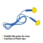 3M™ E-A-R™ Express™ pod Plugs™ corded, Push-to-Fit earplugs feature advanced "no-roll", slow-recovery foam. Paddle style grips allow easy fitting and help keep earplug tips clean even when your hands are dirty. Advanced "no-roll" Push-to-Fit foam earplugs feature paddle style grips to make fitting easier than ever. Unique foam formula allows earplug insertion without rolling. Foam tips stay clean, even when your hands are dirty. Slow recovery foam inserts easily, then seals the earcanal for comfortable hearing protection. These earplugs have a noise reduction rating (NRR) of 25 However, research suggests that many users will receive less noise reduction than indicated by the NRR due to variation in earplug fit, earplug fitting skill and motivation of the user. It is recommended that the NRR be reduced by 50% to better estimate typical workplace protection. These earplugs are test compatible with the 3M™ E-A-Rfit™ validation system. Not only is noise present in our daily routines and recreational activities, but millions of Americans work in hazardous noise on a daily basis. Estimates from the National Institutes of health suggest that hearing loss afflicts 28 million Americans. About one third of those cases are at least partially attributable to noise. Hearing loss due to noise is almost entirely preventable by judicious use of hearing protection.