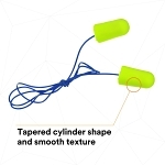 E-A-Rsoft™, 7000002306, Earplugs, Corded, Series: Neons™, Corded Design, 33 dB Noise Reduction, Tapered Shape, Regular Size, Yellow Plug, Soft Polyurethane Foam Plug, Blue Cord, Vinyl Cord, Specifications Met: CSA Class AL, Disposable/Reusable: Disposable