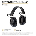Peltor™, 7000108437, Electronic Headset, Series: Tactical Sport™, 20 dB Noise Reduction, Headband Mounting, Black