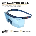 3M™, 7100221209, Protective Eyewear, Premium Unisex, Series: 3700 OTG Series, Universal Size, Anti-Scratch/Scotchgard™ Anti-Fog Lens Coating, Blue Lens, Frameless, Polycarbonate Frame, Yes % UV Protection, Pressure Diffusion Temple, Specifications Met: ANSI Z87.1-2015