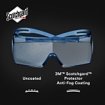 3M™ SecureFit™ 3700 Series is designed to offer eye protection with all-day wearability for workers with prescription eyeglasses. Adjustable ratchet temples allow the user to adjust lens for facial features and eyeglass position. Since prescription eyeglasses may not be anti-fog coated, workers can choose between a standard anti-scratch coating or 3M(TM) Scotchgard(TM) Protector Anti-Fog Coating.
