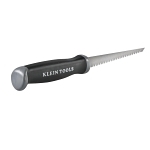 Introducing Klein's new tough and durable jab saw. The hardened, carbon steel blade and comfort-cushion grip handle makes it easy for cutting drywall, wallboard, plywood, and plastic. The 6-inch blade with precision-ground teeth cuts materials easily on an angle or a curve, and in both directions (push and pull). The sharpened tip provides easy drywall start-up without drilling. The flat-end handle design makes it convenient for palming or punching through drywall. This versatile cutting tool is perfect for any professional who needs to cut openings for a multitude of applications like electrical outlets, switches, and boxs in existing walls.