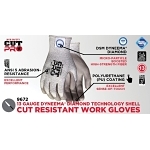 MCR Safety CutPro® 13-Gauge Dyneema® Diamond Technology Shell Cut Resistant Work Gloves Polyurethane (PU) Coated Palm and Fingertips Micro-particle boosted high strength fiber provides cool-touch comfort and maximum durability One of the most distinguishing characteristics of Dyneema® Fiber is its cool-to-touch property. This fiber's inherent ability to dissipate body heat and pass moisture from the inside of the glove to the outside results in longer wear time, which promotes greater hand protection. The 9672 features a 13-gauge salt and pepper color Dyneema® Diamond Technology shell with a rugged gray PU coating on the palm and fingertips. The cut-resistant properties of this glove, combined with its outstanding abrasion and puncture resistance, make it an excellent choice for tough jobs. Are you looking for the best cut-resistant gloves? Look no further than MCR Safety's CutPro® cut-resistant options.