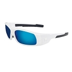 MCR Safety, SR128B, Safety Glasses, Series: Swagger®, Universal Size, Duramass® Hard Coat Lens Coating, Blue Diamond Mirror Lens, Full-Frame, Polished White Frame, Polycarbonate Frame, Yes % UV Protection, Bayonet Temple, Specifications Met: ANSI Z87+