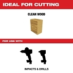 Bore small, clean holes at any angle in a variety of materials with the economical Milwaukee® 15/16 in. x 6 in. flat boring bit. This premium quality flat boring bit is made of heat-treated high carbon steel, so the drill point and cutting edge can be resharpened for cost savings and long life. Bore clean, fast holes at any angle in wood, plastic, plywood and Formica. This bit offers a 6 in. drilling depth but can be used with a 12 in. extension (48-28-3350) for extended deep-hole drilling.
