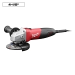 Milwaukee® Angle Grinder, Double Insulated Small, 4-1/2 in Wheel Diameter, 5/8-11 Arbor/Shank, 11000 rpm Speed, 120 V AC, 7 A, Metal Housing Material, 3-Position/Side Handle, Black/Red, Lock-On Slide Switch Control, 10.3 in L Dimensions