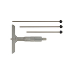 Mitutoyo Depth Micrometer, Imperial Interchangeable Rod, Series: 129, 0 to 4 in, +/-0.00012 in Accuracy, Graduations: 0.001 in, 0.00005 in Resolution, Flat Anvil, Flat Spindle, 0.157 in Spindle Dia, Ratchet Thimble, Hardened Steel, Satin Chrome, 4 in L x 0.63 in W