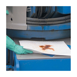 • Our most cost-effective mat when you only need to absorb oil-based liquids • Eight layers of 100% polypropylene are thermally bonded to make PIG® mat the strongest mat on the market, won't rip, tear or fray even when saturated • Exclusive dimple pattern speeds wicking of liquid throughout mat for faster, easier cleanup • Highly absorbent, fine-fiber construction won't leave behind liquids or fiber residue • Absorbs oil and fuels, not water • White color tells you it's only for oils and fuels, draws attention to machine leaks and clearly shows saturation level during spill response • Floats to clean up spills on water • Can be wrung out and incinerated after use to reduce waste or for fuels blending • Flame-resistant material won't burn immediately like cellulose mats, melts when exposed to high heat while on the job • Easy-tear perforations let you take only what you need, so you use less mat and save money • Heavyweight construction is highly durable and absorbent for demanding tasks and large volume cleanups • Lasts 2X longer than ordinary mats for fewer change outs, while only absorbing oil and fuels, not water • Loves oil • Hates water