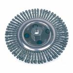 Osborn Wheel Brush, 6-1/2 in Brush Dia, 3/16 in Face Width, Arbor Hole Size 5/8-11, Stringer Bead Knot Filament/Wire, 0.02 in Filament/Wire, Carbon Steel Fill, 1-1/4 in Trim Length, 12000 rpm Maximum, Threaded Arbor Attachment