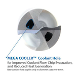 The A Brand® ADO-SUS drill series is OSG's premium line of carbide coolant-fed high performance drills, designed to drill in stainless steel. New Mega Cooler™ coolant hole shape improves coolant flow, chip evacuation and cutting heat generation. This reduces work hardening, which leads to longer tool life during tapping and reaming operations. While our proprietary WXL® coating provides drastically higher coating oxidation temperature and hardness that dramatically improves wear resistance.