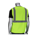 PIP® Safety Vest, Dual Sized High Visibility, Series: 302-V100, S/M Size, Hi-Viz Yellow, Polyester Mesh, Silver Stripe, 47 in Chest, 28 in Length, Zipper Closure, 1 Pocket, ANSI Class: Class 2, Specifications Met: ANSI 107 Class 2 Type R2