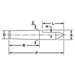 Riten Dead Center, Half Style 2 Standard Length, Morse Taper Shank, #3 Taper, Standard Point, 0.938 in Point Dia, 0.938 in Head Dia, 5-1/4 in Overall Length, 60 deg Included Angle, Hardened Tool Steel, +/-0.00005 in Accuracy