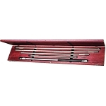 Starrett 121 tubular inside micrometers are designed for large internal measurements beyond the capacity of most other micrometers. Each set consists of a micrometer head mounted at the end of a tubular holder in which measuring rods can be inserted and adjusted to the desired size. Final size reading in thousandths of an inch (.001") is obtained using the micrometer head. With 3 Graduated Measuring Rods & 2 Extension Rods 32"-107", 3 Graduated Measuring Rods, 2 Extension Rods, Case With 3 Graduated Measuring Rods & 2 Extension Rods.