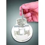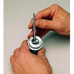 The Starrett 229 Telescoping Gage is used for determining the true size of holes, slots, and recesses up to 6" (150mm). The ends of both contacts are hardened and ground to a radius to allow proper clearance on the smallest hole the gage will enter. This tool must be slightly rocked in the hole being measured to ensure that the tool is on the proper diameter before it is locked and withdrawn. The final hole size is obtained by measuring over the gage contacts with a micrometer. 3/4"-1 1/4" (19-32mm) Range, 2 3/8" (60mm) Handle.