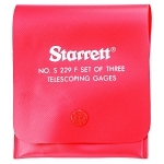 The Starrett Telescoping Gage is used for determining the true size of holes, slots, and recesses up to 6" (150mm). The ends of both contacts are hardened and ground to a radius to allow proper clearance on the smallest hole the gage will enter. This tool must be slightly rocked in the hole being measured to ensure that the tool is on the proper diameter before it is locked and withdrawn. The final hole size is obtained by measuring over the gage contacts with a micrometer. SET, Includes 3, Nos. 229A/B/C in Case.