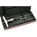 The Starrett 440, 440M, 445, 445M Series Depth Micrometer features a combination ratchet and speeder, ring-type locknut, ratchet stop and locknut. 0-3" Range, 4" Base, 3 Rods, Ratchet Stop, Lock Nut, Case.