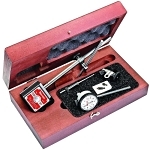 The Starrett 657 Set Including Magnetic Base has three precision ground, magnetic contact surfaces. Grips horizontally, vertically or upside down. V-step holds base to round surfaces. Extra #1/4-20 tapped hole in one side of base (not shown) for mounting post. Available with or without Starrett AGD Dial Indicators: inch reading 25-131J (graduation .0005", dial reading 0-25-0, range .125") or millimeter reading 25-181J (graduation 0.01mm, dial reading 0-50-0, range 2.5mm). Other indicators can be furnished on request. Magnetic Base with 657G/657H/657J/25-131J with Case.