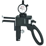 This lightweight gage is used for in-process or bench inspection of oil grooves, snap ring retainer grooves, O ring seat retainer grooves and similar internal recesses. It is also useful for checking bore dimensions and testing for taper, bell-mouth and out-of-roundness. The movable, sensitive gaging contact has a 1/2" (12.7mm) retractable range and transfers the measurement through a linear, friction-free transfer mechanism to the dial indicator. The lower reference jaw is fixed and supports the entire weight of the gage and the operator's hands, thus preventing incorrect gaging pressure and false readings. The reference jaw can be mounted in two positions on the range adjusting bar. The bar itself is also adjustable for greater or lesser range. A fine adjustment screw and a lock are also provided. .375-6" Range with 81-136-622J Indicator in Case A fine adjustment screw and a lock are also provided.