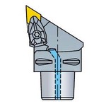 T-Max® P is your first choice for general turning, ranging from medium to large components. Stability and security are essential for productive turning. Use lever clamping for wet machining, rigid-clamping for dry machining, short chipping materials and extra stability, Pre-directed precision nozzles create parallel laminar jets of coolant with high velocity, directed at the right place of the insert edge. It is the precision and character of these jets that make the difference in terms of chip control and process security, Double-sided inserts have strong edges that offer reliable and secure machining for all applications. Use wiper and Xcel technologies for machining at even high feed rates without affecting surface finish or chip breaking ability.
