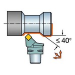 T-Max® P is your first choice for general turning, ranging from medium to large components. Stability and security are essential for productive turning. Use lever clamping for wet machining, rigid-clamping for dry machining, short chipping materials and extra stability, Pre-directed precision nozzles create parallel laminar jets of coolant with high velocity, directed at the right place of the insert edge. It is the precision and character of these jets that make the difference in terms of chip control and process security, Double-sided inserts have strong edges that offer reliable and secure machining for all applications. Use wiper and Xcel technologies for machining at even high feed rates without affecting surface finish or chip breaking ability.
