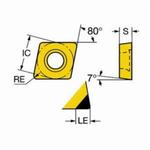 Sandvik Coromant Turning Insert, Series: CoroTurn® 107, CCGW Insert, 3(2.5)2 Insert, Diamond, 0.2 mm Maximum Depth of Cut, 3/8 in Inscribed Circle, 0.1562 in Thickness, 09 Seat, Positive Rake, 53 Chipbreaker, 0.0314 in Corner Radius, 0.1732 in Hole Dia, Manufacturer's Grade: 7015, ANSI Code: CCGW3(2.5)2S0320F 7015, ISO Code: CCGW09T308S01020F 7015, 80 deg Included Angle, 7 deg Relief Angle, Neutral Cutting, Carbide, PVD-TiN Coated, Material Grade: H, For Use On: Hardened Steel